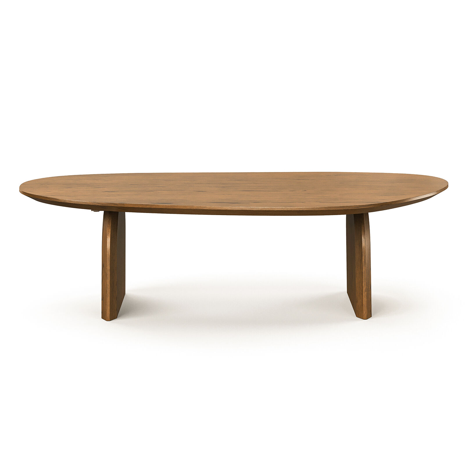 Unique and quirky in the form, the Arco Oval Coffee Table honours the beauty of geometry in this free-form, solid oak number. The blob-shaped inspired slab is thinly carved to produce a smooth surface with delicately chamfered edges. Underneath, slender arc-shaped legs carry the entire table with marvellous endurance. At first glance, it is forgivable to think of it as an art sculpture. With its clean lines, this coffee table’s minimal aesthetic easily adapts to any living space or interior.