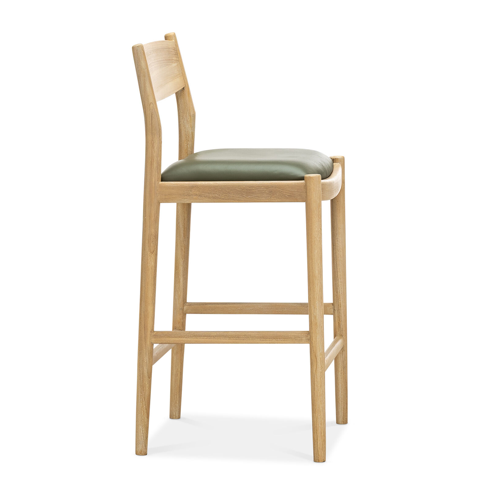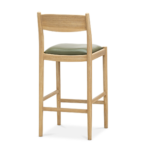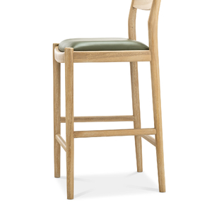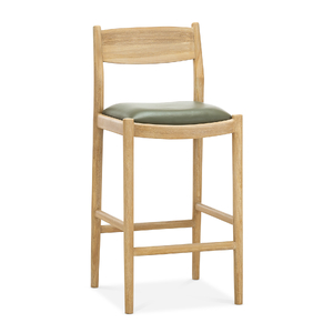 Indulge in the refined simplicity of enduring design. The Calum Leather High Back Counter Stool plays to timeless form and luxury where every curve and line serves a purpose. The counter bar stool showcases exceptional joinery through its rounded timber connections, gracefully curved backrest and a plush leather-upholstered cushion that invites you to settle in. The organic solid hardwood teak brings natural warmth to any setting, while the generous high back provides genuine support for extended seating. The Calum is a sophisticated and inviting addition to your everyday kitchen counter needs, bringing understated sophistication to your home that feels earned rather than announced.