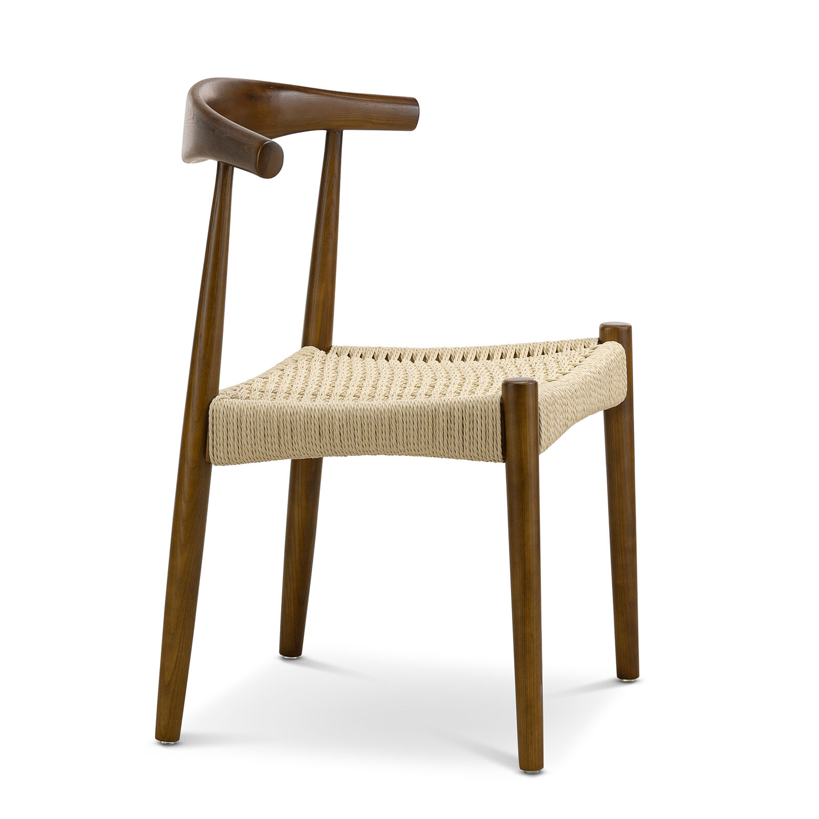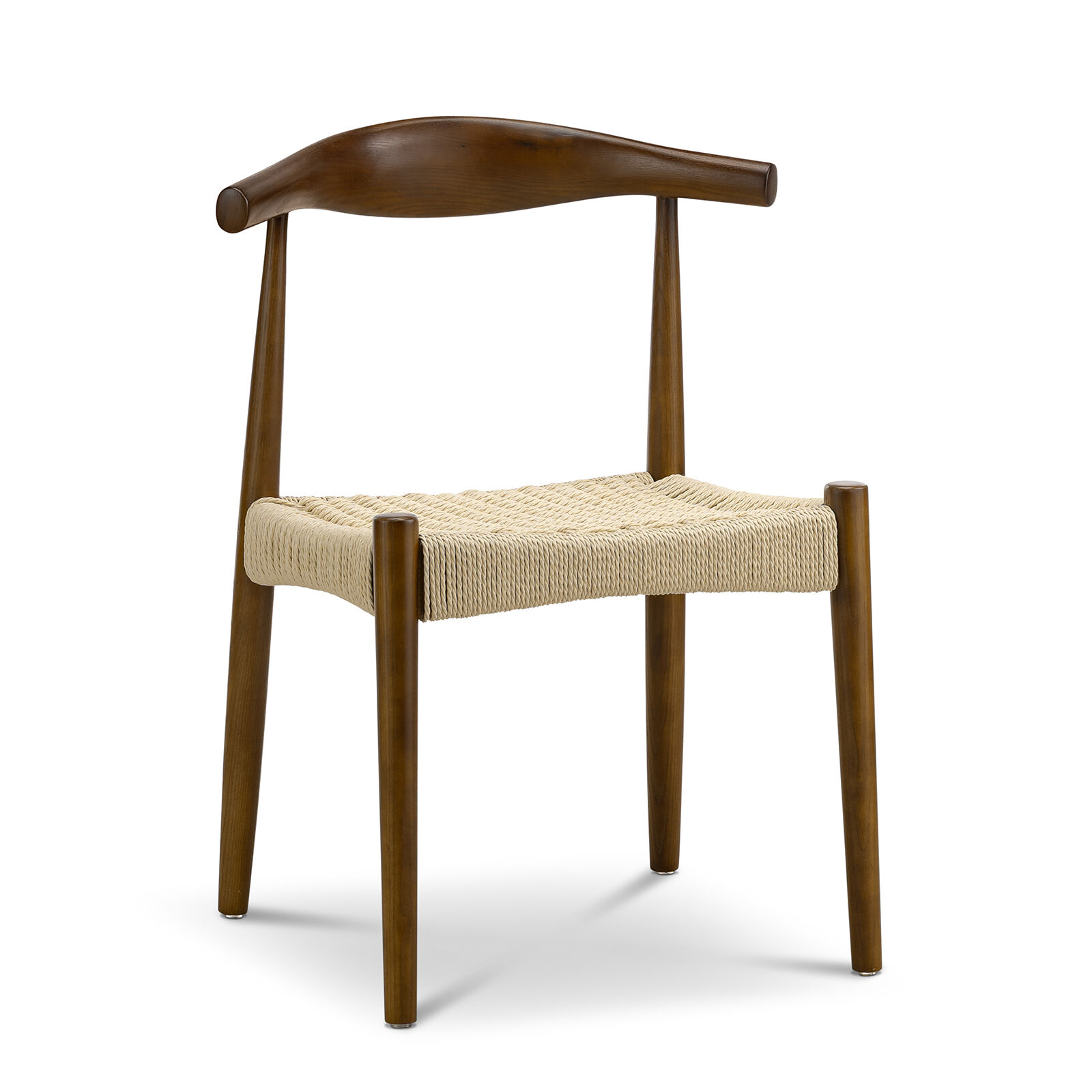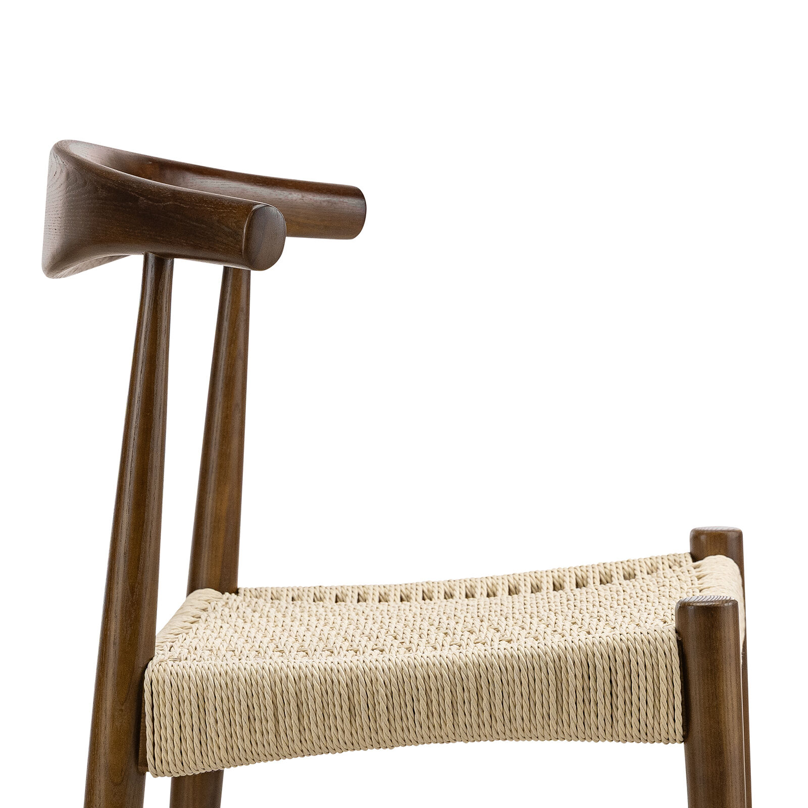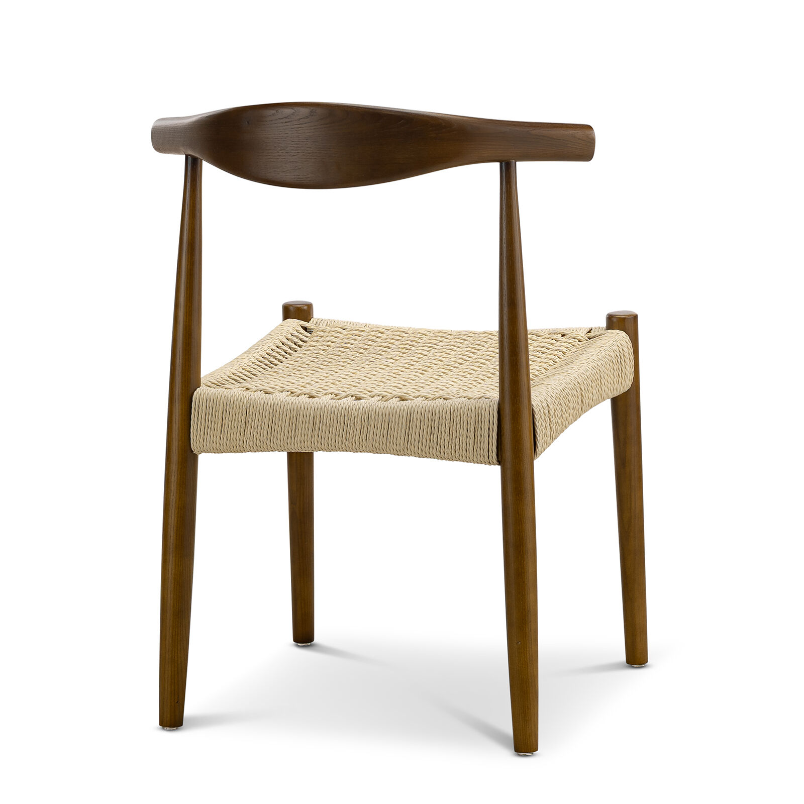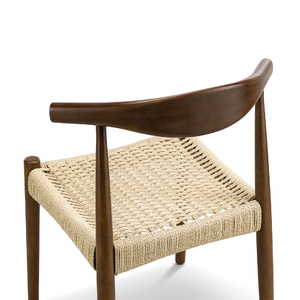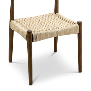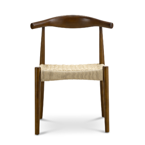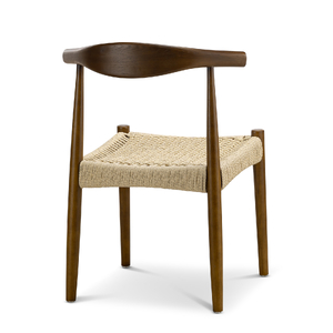 The Elba Woven Cord Dining Chair pays homage to an iconic Danish classic, originally designed in 1956 for its modern function and form. Meticulously crafted from solid American Ashwood, it features the characteristic steam-bent backrest contoured by one continuous piece of wood. Every line and curve is expertly shaped for ergonomic comfort, while brown & natural paper cord is hand-woven into the seat to create both visual texture and supportive seating.