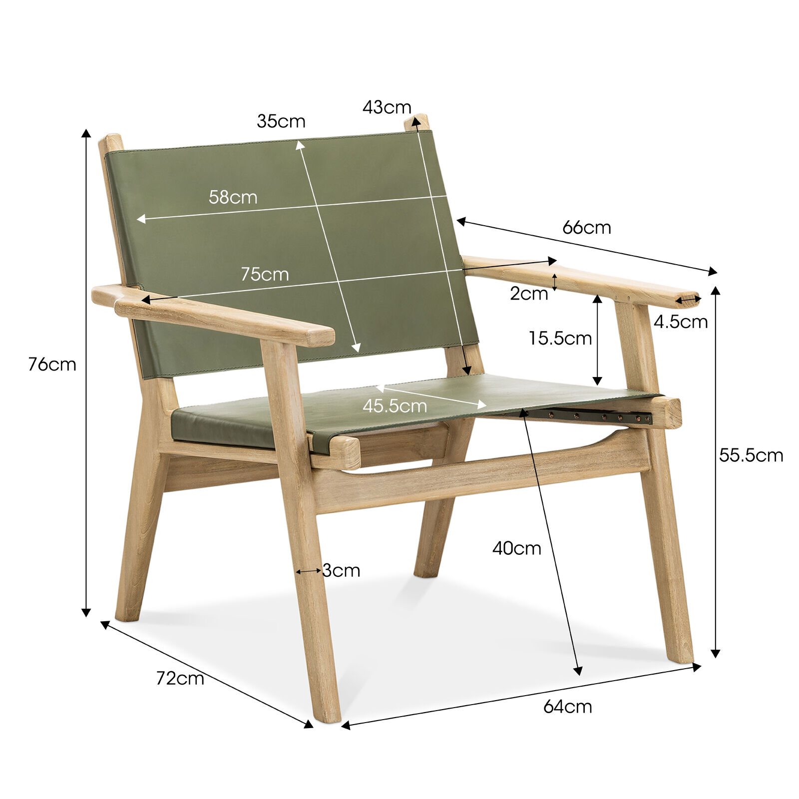 | Material Details | Genuine Cowhide Leather, Solid Teak Hardwood Frame |