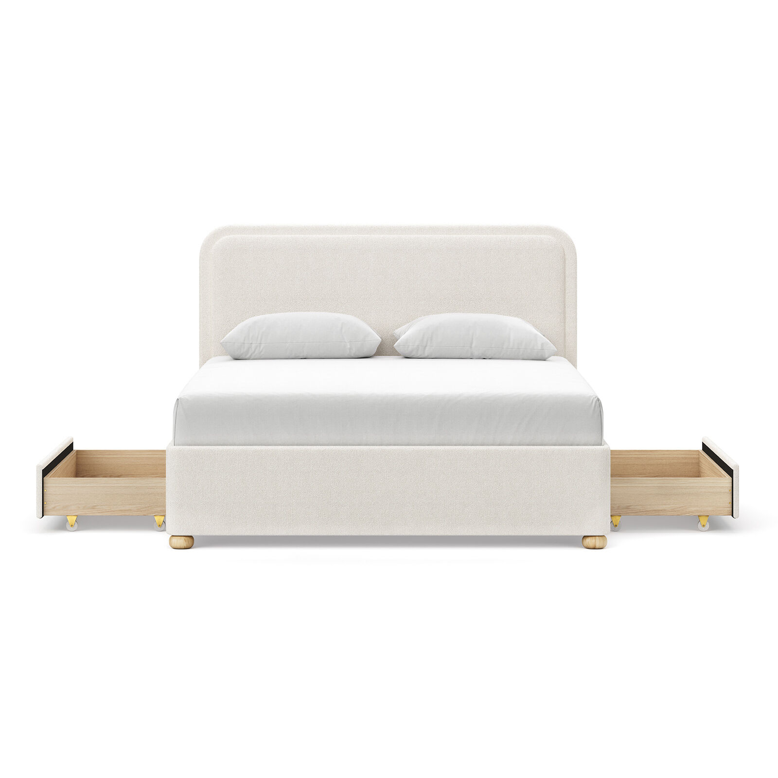 There's an understated elegance in design that quietly solves life's daily challenges. The Lanore Queen Storage Bed embodies this philosophy, where timeless design meets contemporary functionality. Its softly sculpted headboard creates gentle curves and clean lines that frame your space with classic sophistication, while two discreet drawers seamlessly integrate storage into your sanctuary without disrupting the room's tranquil aesthetic. Fully upholstered and elevated on rounded bun feet, the Lanore represents the art of thoughtful design—beautiful enough to anchor your most personal space, smart enough to simplify your daily routine.