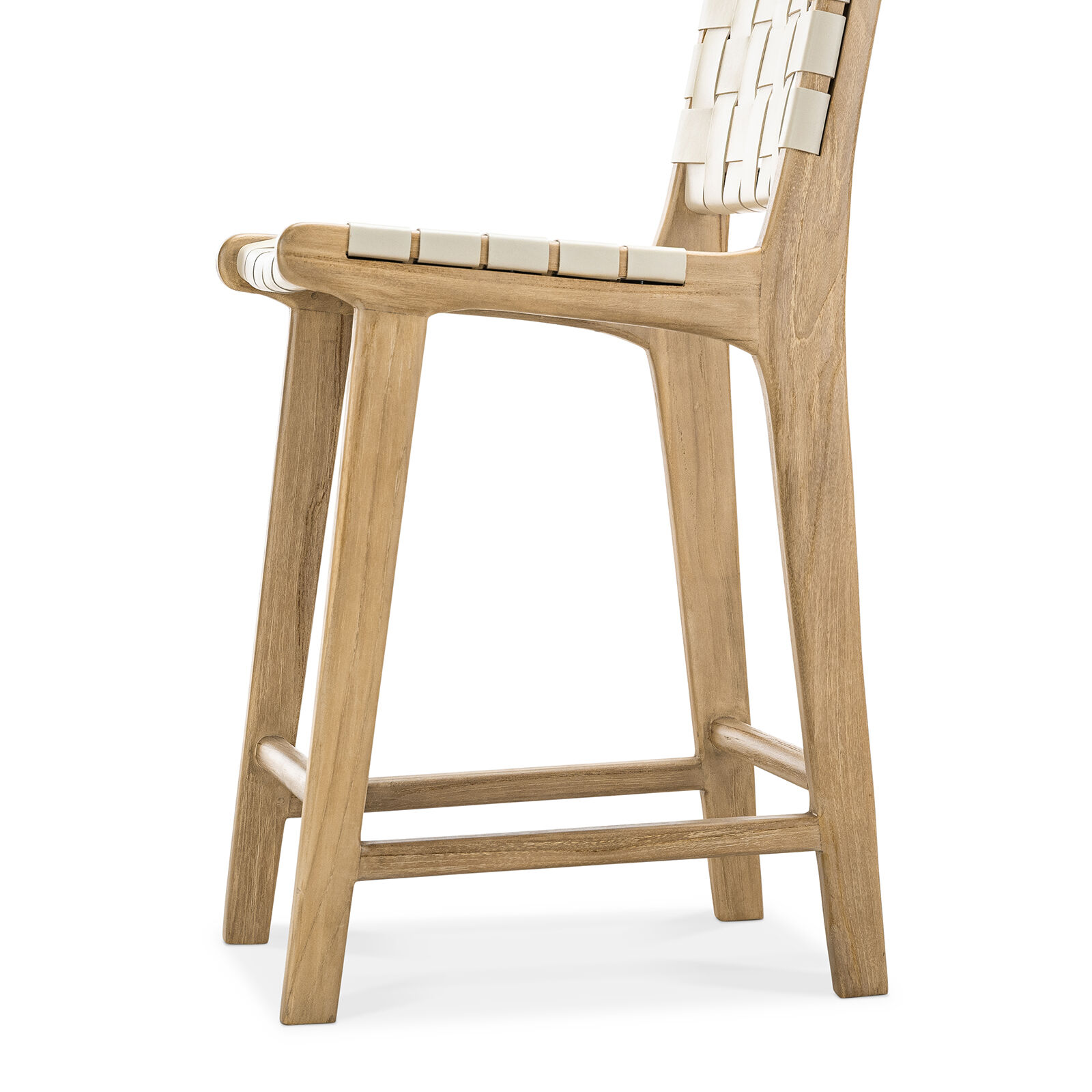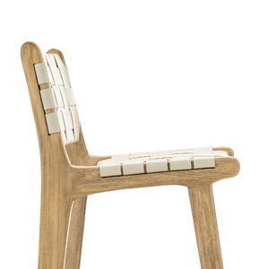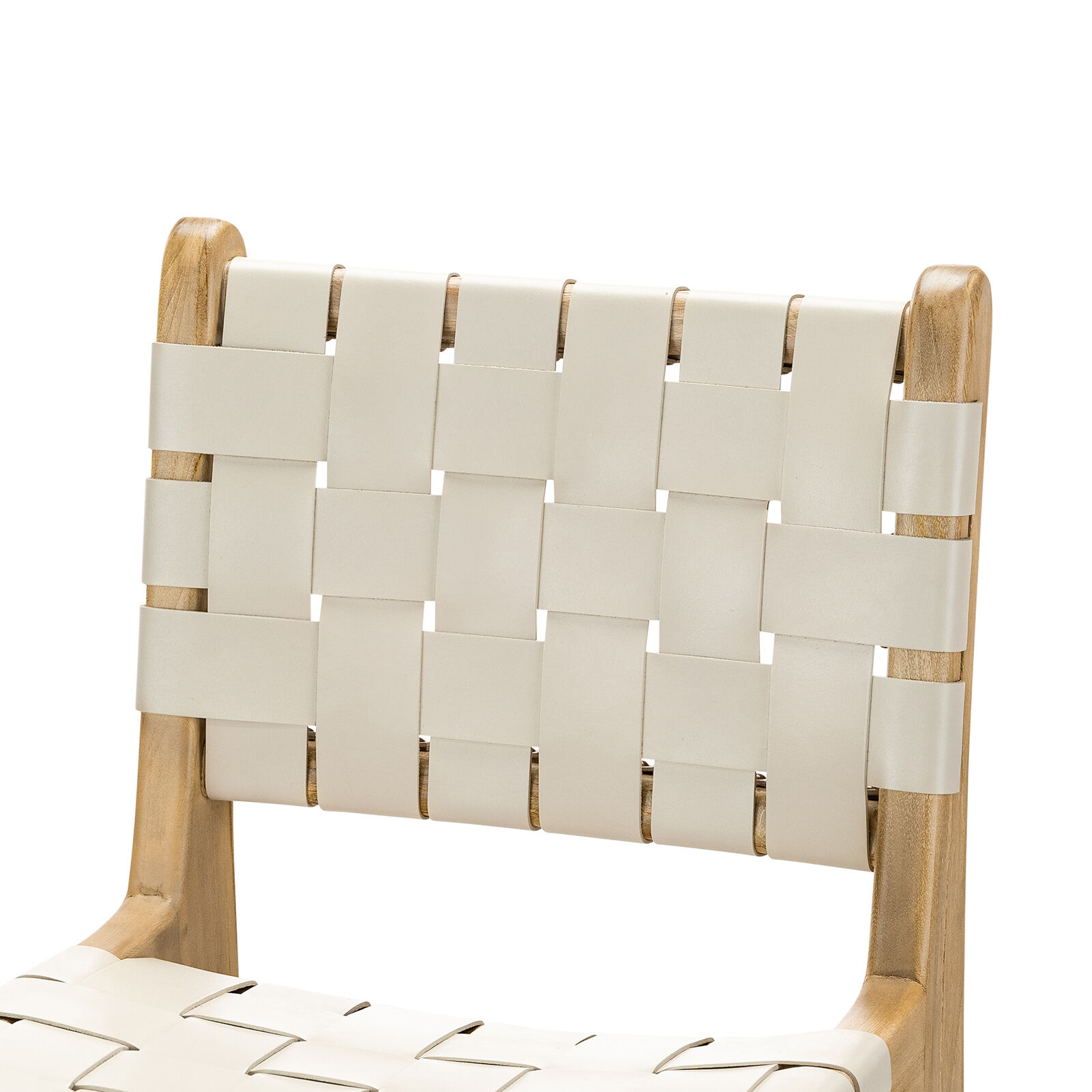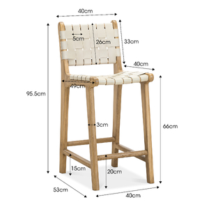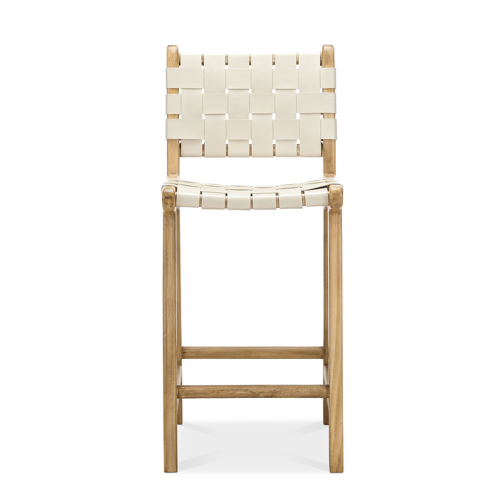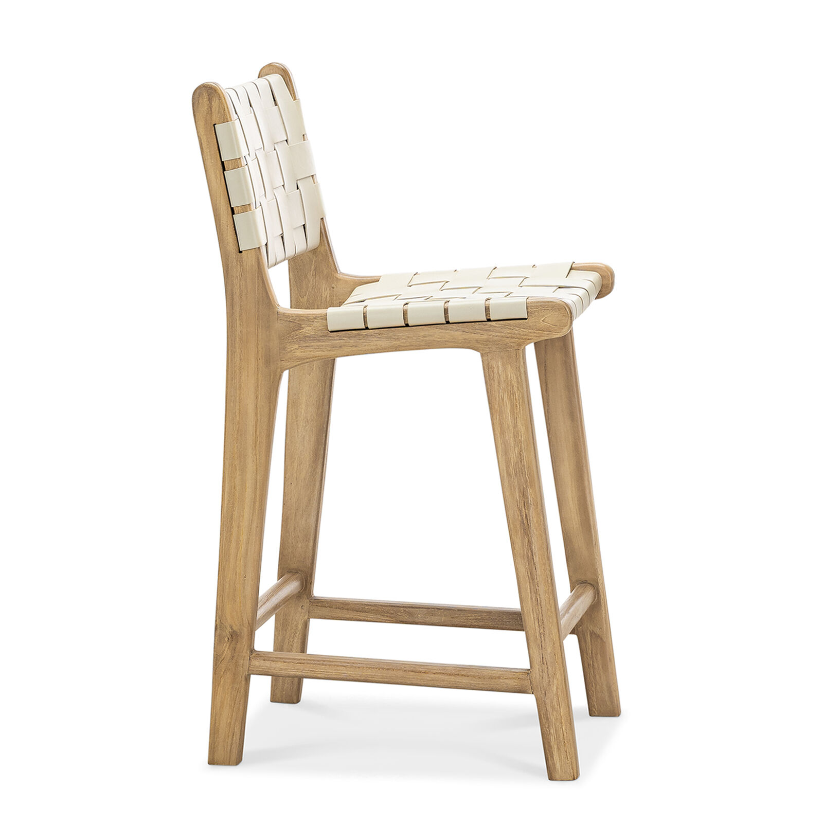 Indulge in the refined beauty of handwoven leather artistry. The Lazie Woven Leather High Back Counter Stool plays to tactile luxury and form while exhibiting a splendid show of artisan detail. The counter bar stool features a glorious woven leather backrest and seat featuring 5cm genuine leather straps, the cross weaved pattern creates visual intrigue and maintains lasting suspended comfort. Thanks to its solid hardwood teak frame, the organic materials bring natural warmth to any setting, while the generous high back provides genuine support for extended seating. The Lazie is a sophisticated and inviting addition to your everyday kitchen counter needs, aging beautifully as it becomes part of your daily rituals.