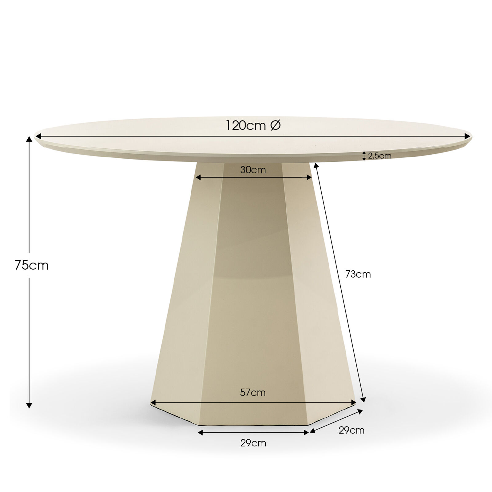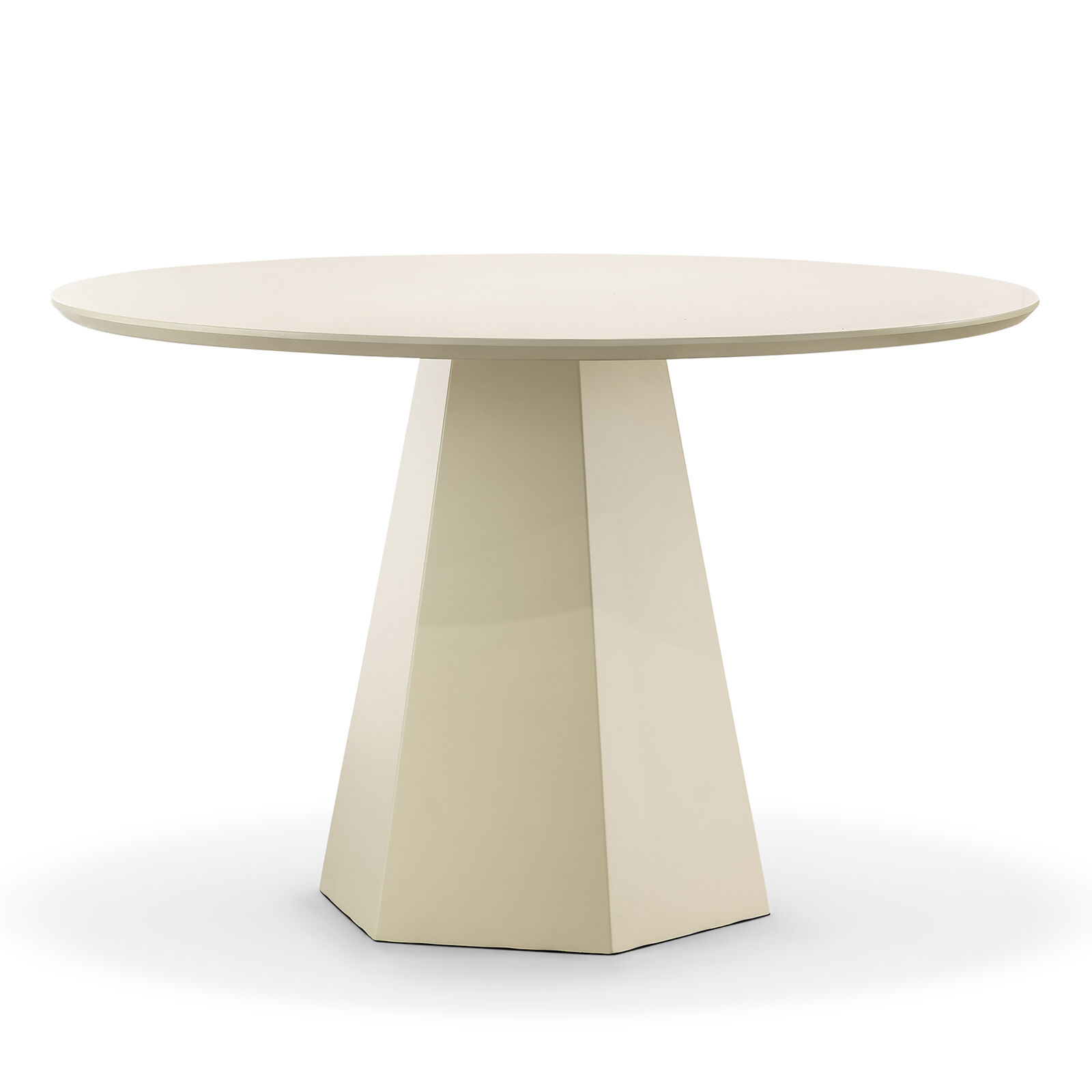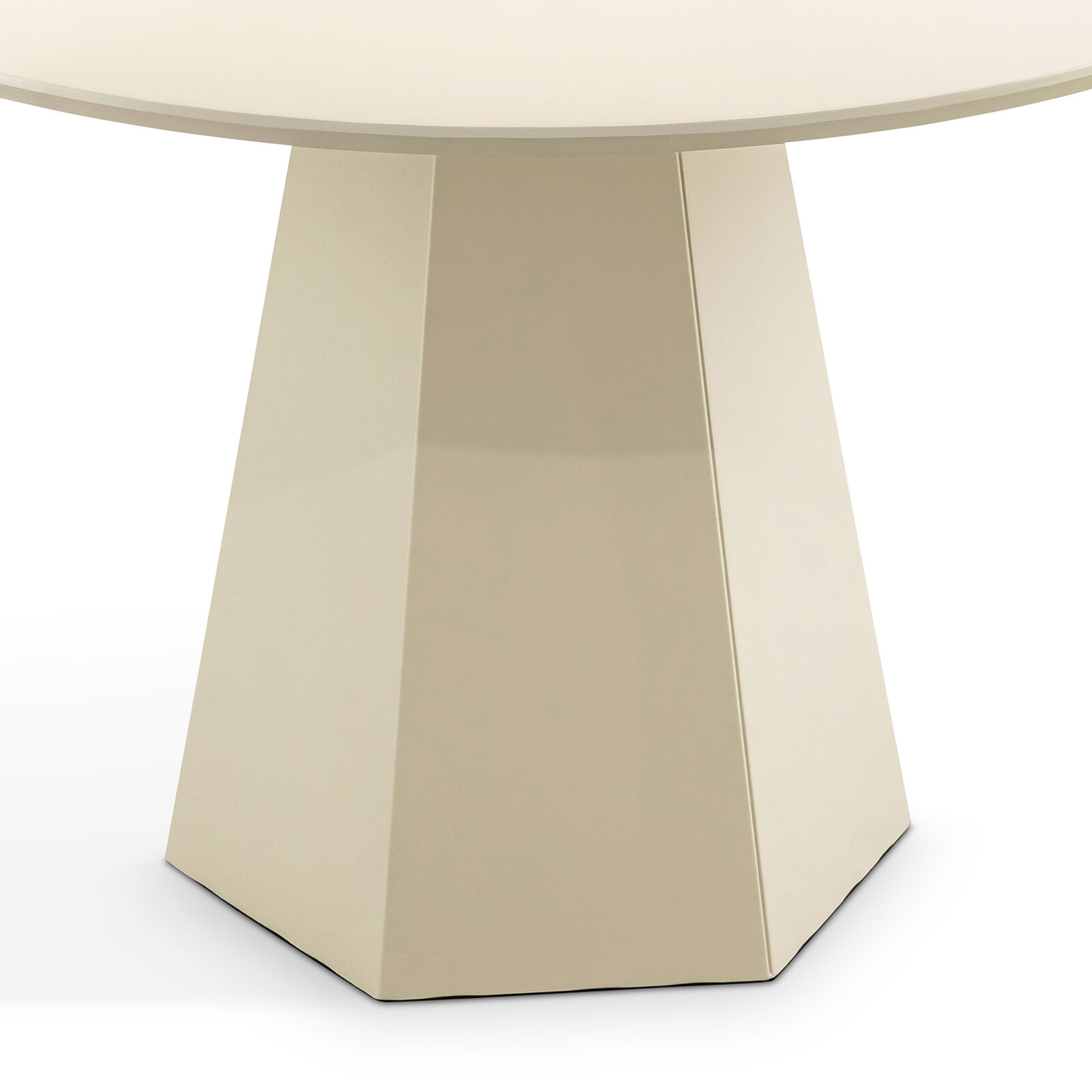 The Malley Round Dining Table is a study in refined contrasts, where soft curves meet sharp angles, and quiet restraint reveals unexpected strength. Its smooth circular top rests above a striking hexagonal pedestal, a bold geometric statement that anchors the room with architectural confidence. Beneath the minimalist surface lies an internal stainless steel frame, engineered for endurance. Finished in a soft matte sheen that invites touch while resisting the chaos of daily life, Malley transforms intimate dinners and casual gatherings into moments of deliberate beauty. This dining table understands the power of precision, the elegance of restraint, and the quiet drama that unfolds when form and function achieve perfect balance.