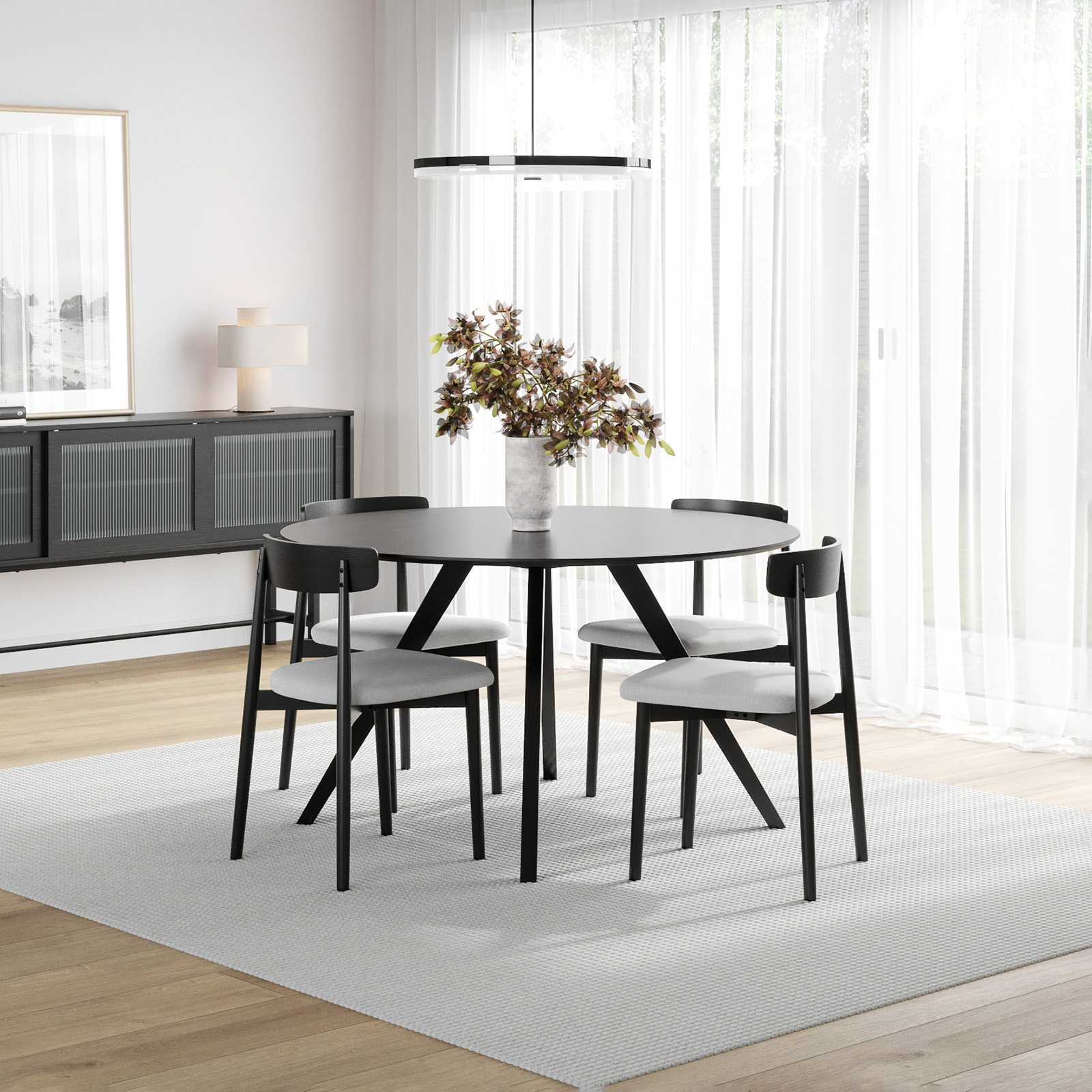 The Milari 5 Piece Black Dining Set with Finn Black Grey Oak Chairs has been personally curated to effortlessly complete your dining space.