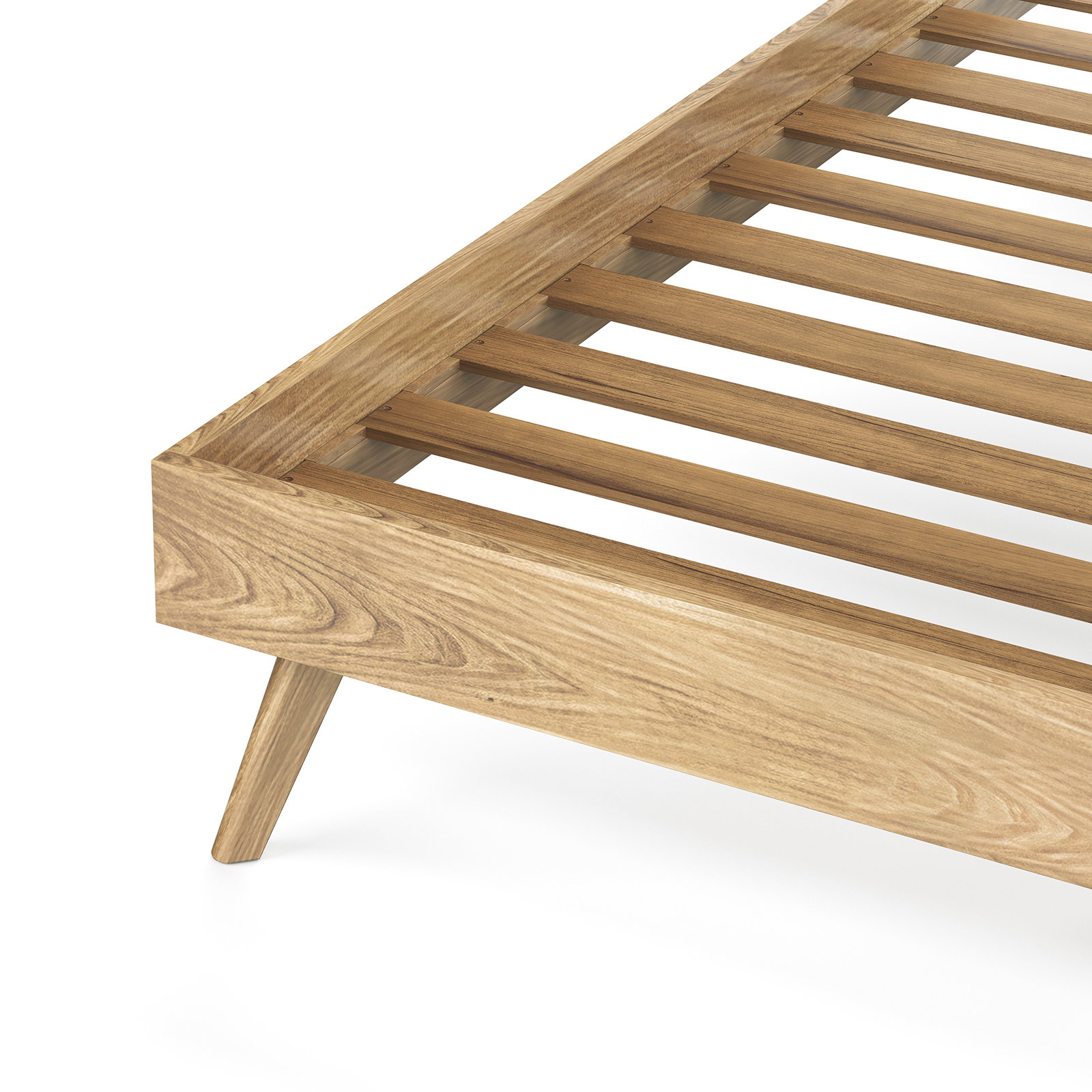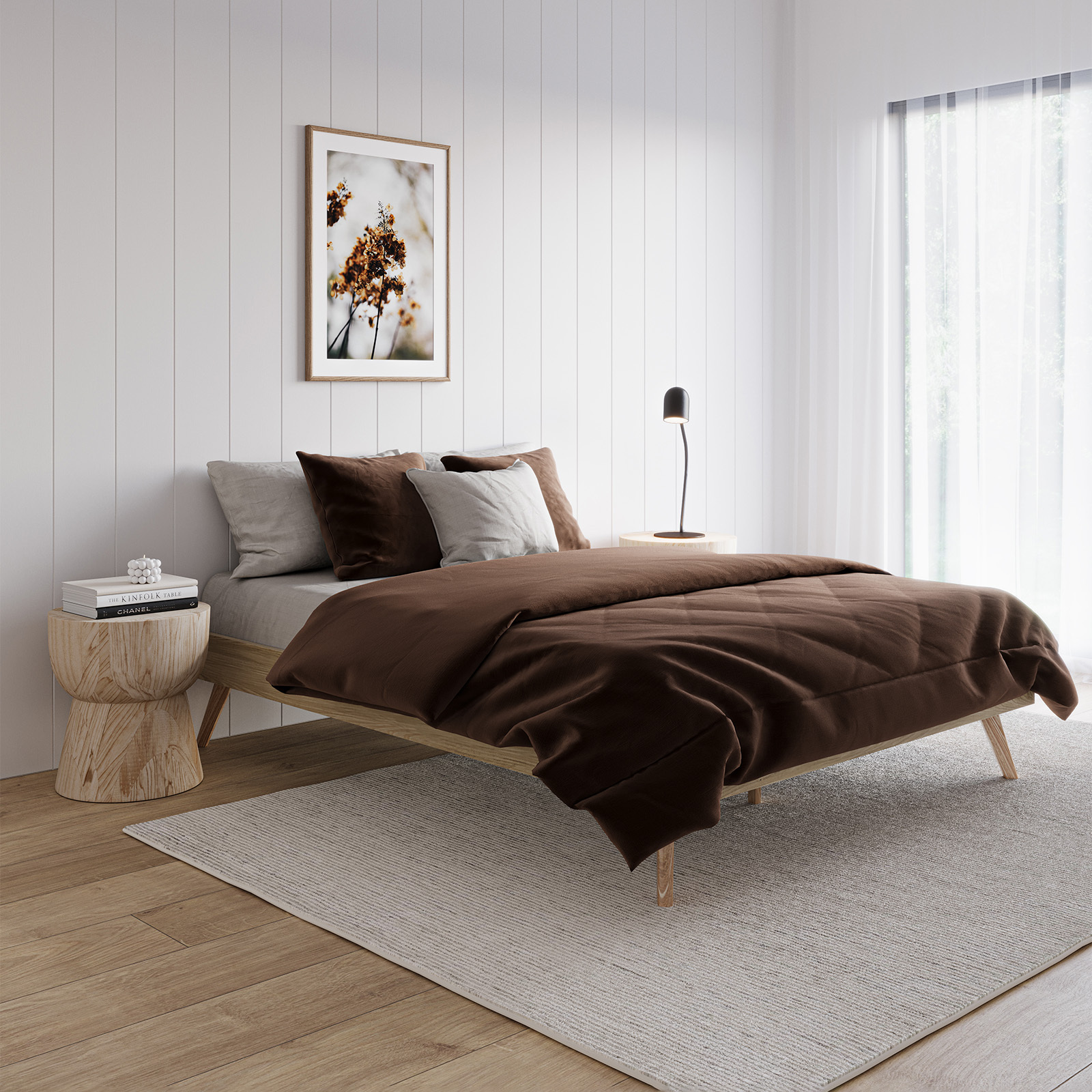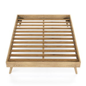 A new take on a mid-century modern bedroom styling can be seen in the Stella Bed Base. Designed as a standalone frame, ideal for those looking for a versatile option to pair their own headboards or to use without one. Crafted with a solid American Oak wood veneer, it features an aesthetic that adds a timeless look to any bedroom space, while its slanted legs add a hint of geometry for some shape and form. The robust wooden frame ensures durability and stability, providing the necessary support for your mattress and keeping you glued to your bed for hours.